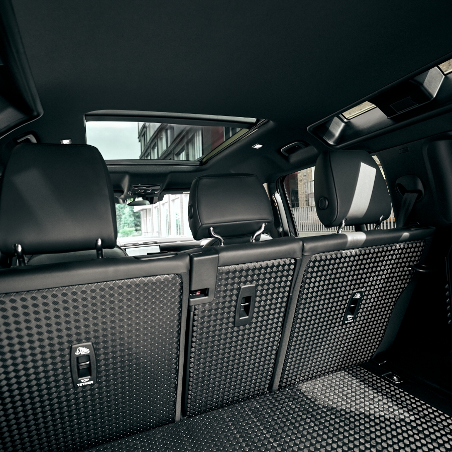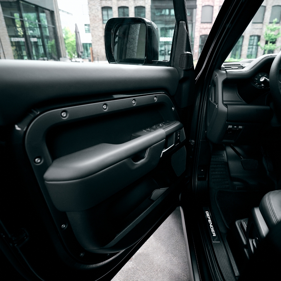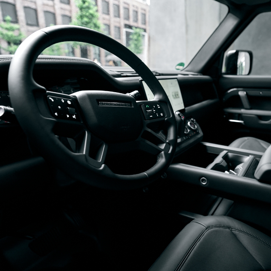 Bold design meets premium details: The iconic silhouette in Carpathian Grey, enhanced by Gloss Black accents and striking 22” alloy wheels, gives the Defender a commanding presence. Inside, clean lines, high-end materials and smart ergonomics create a stylish environment, perfect for both city drives and mountain escapes.