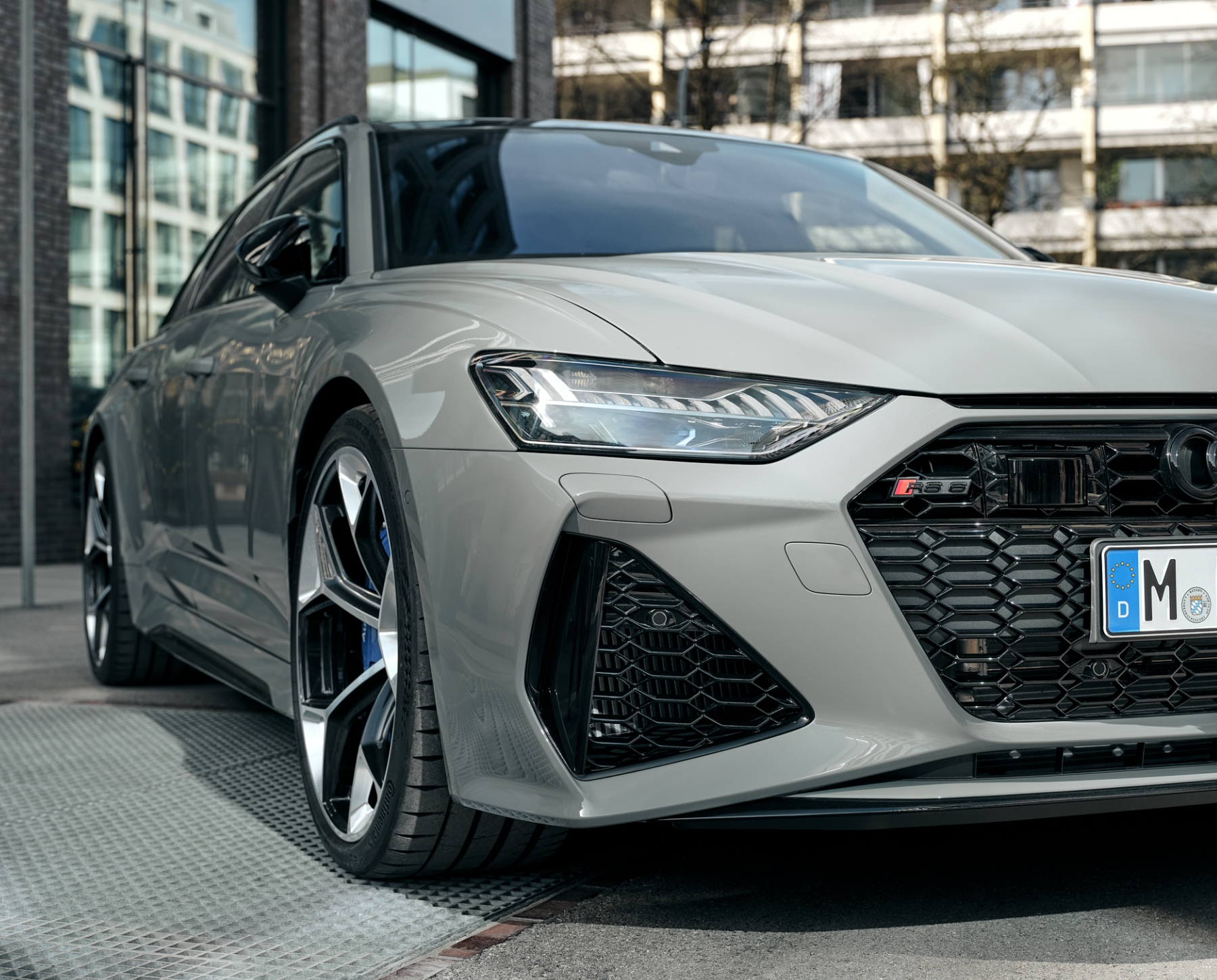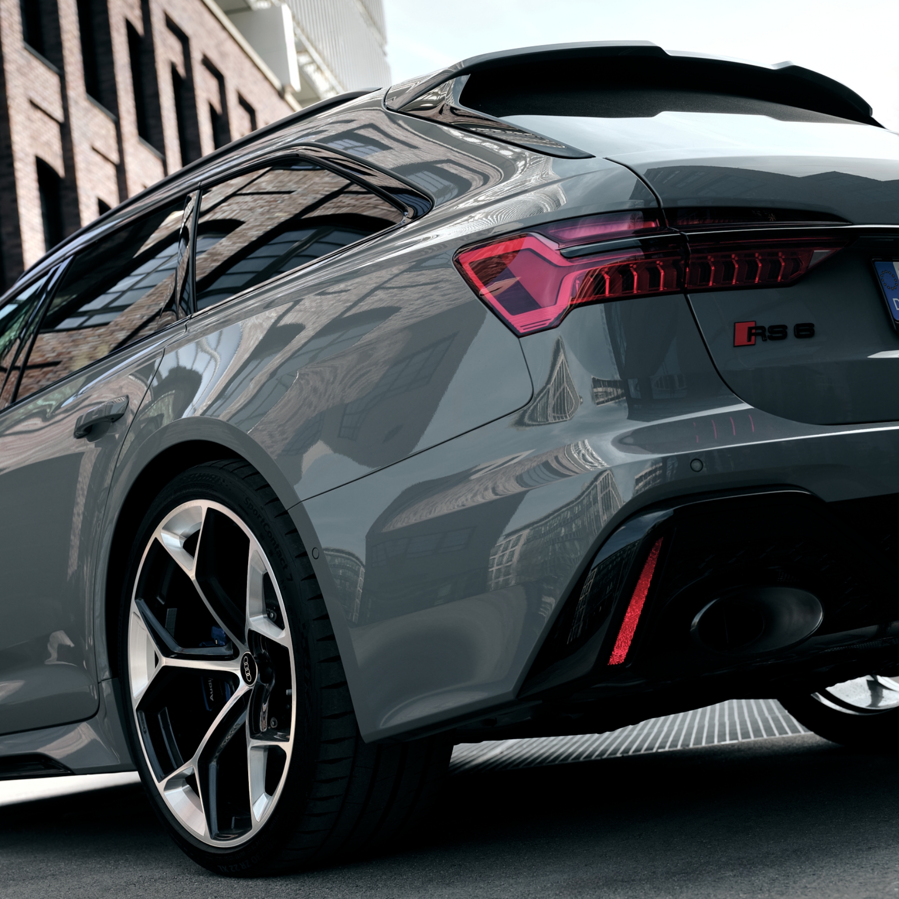 The Audi RS6 Performance blends uncompromising sports car power with everyday usability. Its 4.0-liter V8 delivers an impressive 630 hp, accelerating from 0 to 100 km/h in just 3.4 seconds. With the Dynamic Package Plus, it reaches a top speed of 305 km/h – pure performance, backed by 850 Nm of torque.