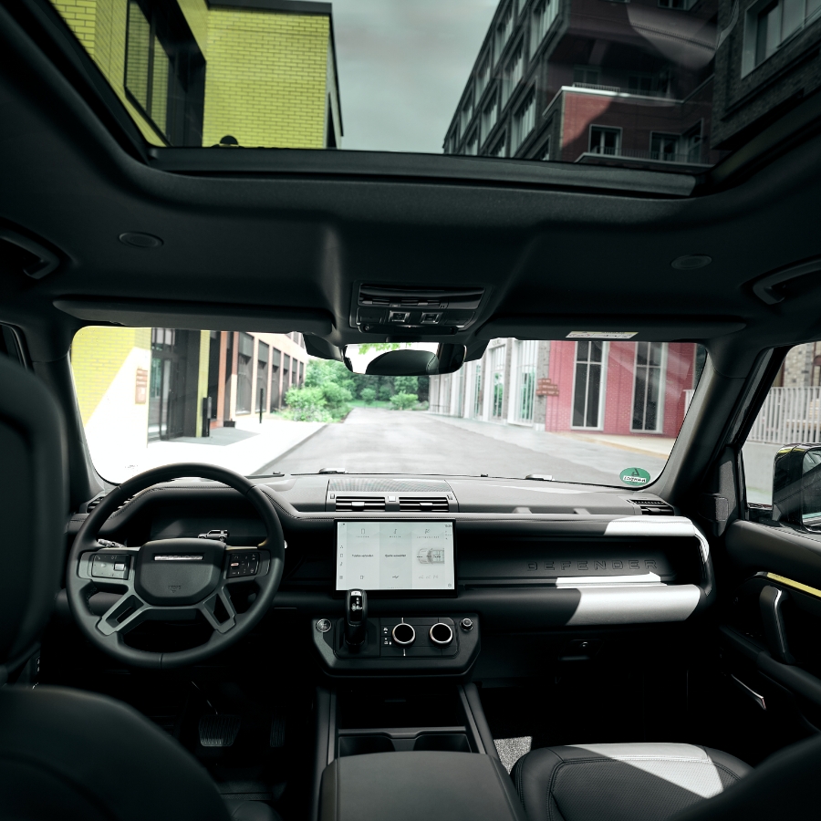 Bold design meets premium details: The iconic silhouette in Carpathian Grey, enhanced by Gloss Black accents and striking 22” alloy wheels, gives the Defender a commanding presence. Inside, clean lines, high-end materials and smart ergonomics create a stylish environment, perfect for both city drives and mountain escapes.
